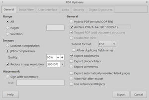 In LibreOffice you can easily export the file as PDF (Menu: File -> Export as PDF). Use the following options:
