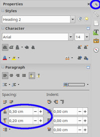 - Sometimes it's helpful to change the formatting of one individual headline / paragraph. Select it and change the spacing (see picture to the right)